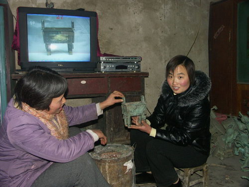 大年初一下午,笔者驱车赶往葛寨乡烟涧村拜访一位老友伊川县文物复仿制品公司经理刘乐从,。可到了朋友家却是“铁将军”把门。邻居告诉我们,这些年,县里号召大伙儿搞青铜器仿制,村里200多家家家都在上设备,搞工艺,春节期间正是青铜器旺销季节,自然成了一年中最忙的时候。“冬闲”成了“冬忙”,村里人大都到青铜器作坊里忙活计去了。